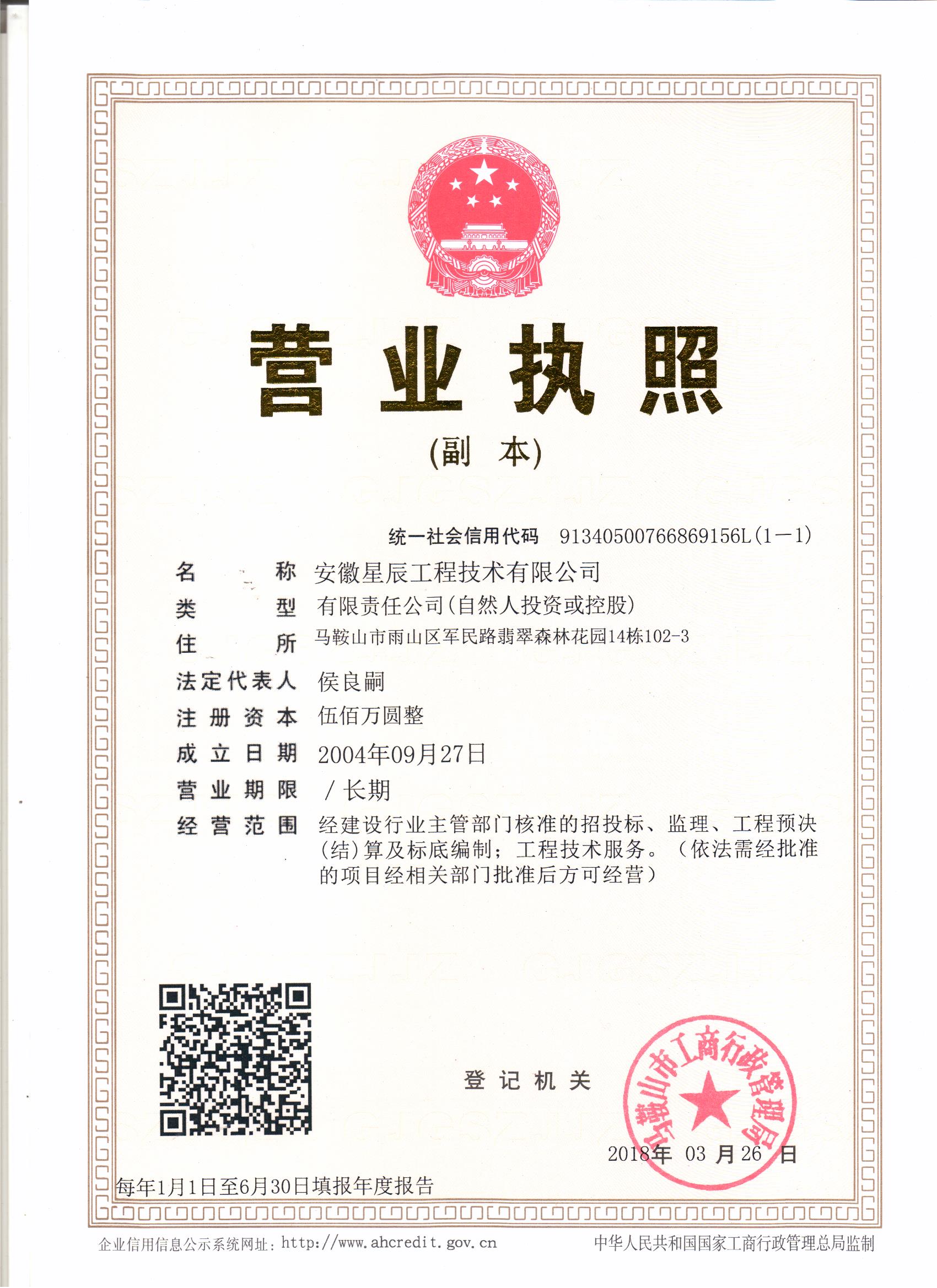 安徽星辰工程技術有限公司于2004年9月成立,現注冊資金為500萬元人民幣,公司注冊地址(辦公地址):安徽省馬鞍山市雨山區軍民路翡翠森林花園14棟